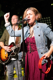...were formed some six years ago in Toronto by Meghan Parnell and Dave Barnes who remain the driving force of the band with accomplished support from a solid backline and a two-man brass section that sounds like there’s half a dozen at times. And so, at the allotted hour they appear and start with two tracks from ‘Remain’ their new album, ‘Bring it Back’ and ‘Ties that Bind’. It’s a very good start. ‘Sweet Maria’ requires audience participation which might be considered a bit ambitious so early in a night, but Blackpool is well versed in this sort of thing and doesn’t need too many attempts to get it spot on.
